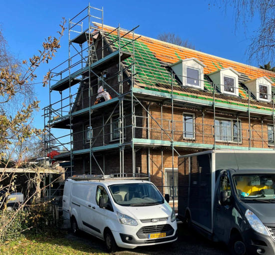 Heel huizenblok in de steigers